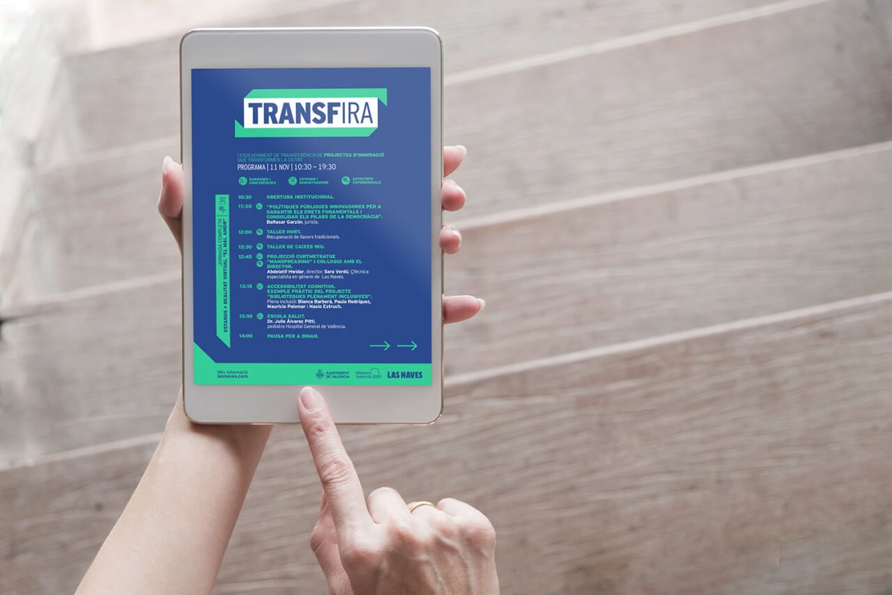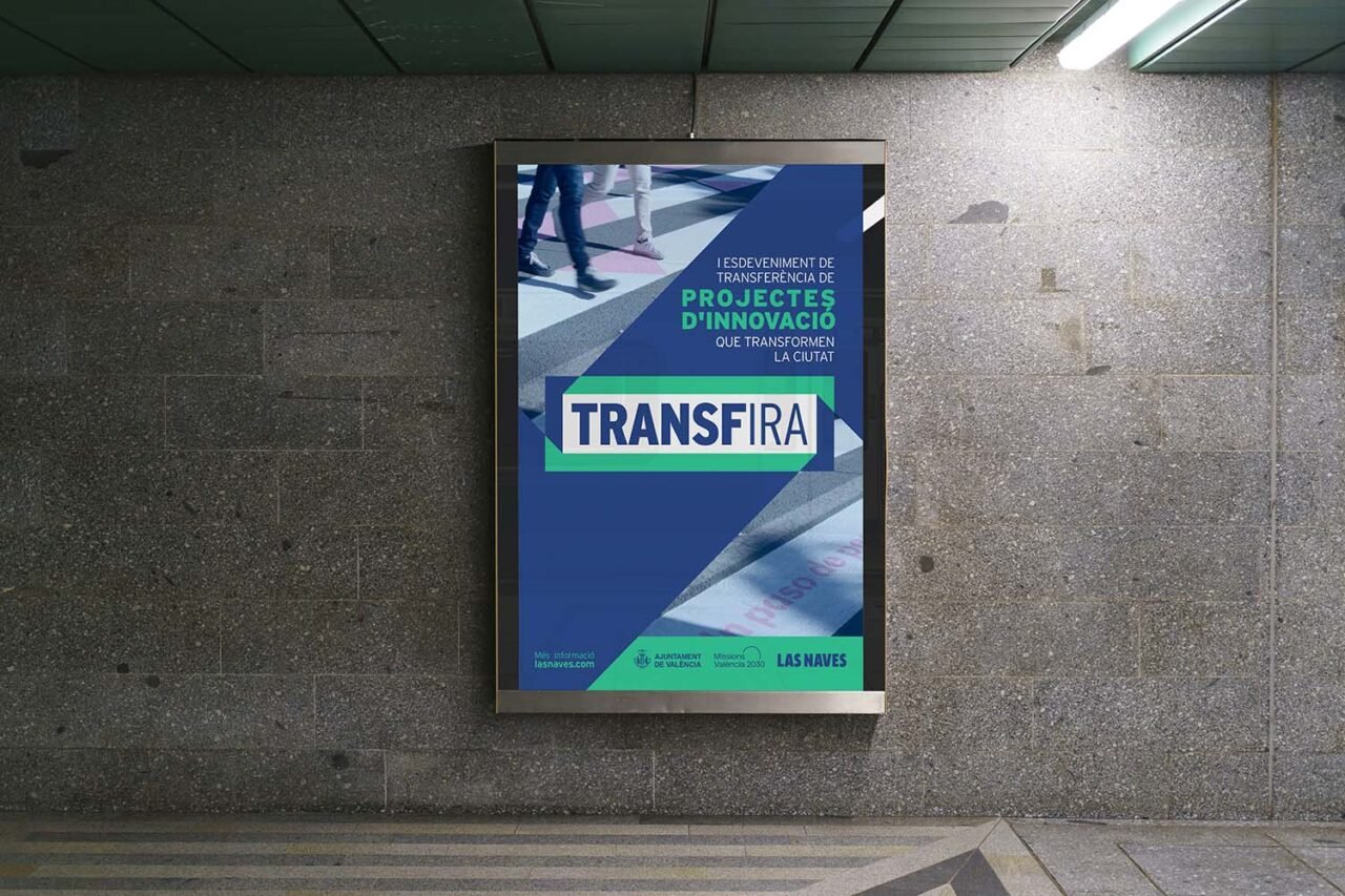 Las Naves buscaba una imagen que reflejara la esencia de TRANSFira, una feria donde se comparte el conocimiento que generan las experiencias innovadoras que se han demostrado eficientes. Creé un marco geométrico alrededor del nombre, con flechas que al animarse simbolizan la transferencia constante de información. La identidad, que comprendía elementos gráficos, iconografía y señalética se implementó en un circuito de publicidad exterior y en la propia feria. Una imagen fresca y dinámica que conecta con la naturaleza innovadora de TRANSFira.